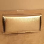 甘い輝きが魅力の財布「ロマンスゴールド」。金色の煌めきが豪華で、女性らしい華やかさを演出します。使いやすい二つ折りデザインで、小銭入れやカードスロットも充実しています。エレガントなデザインながらも、使い勝手の良さを追求しました。