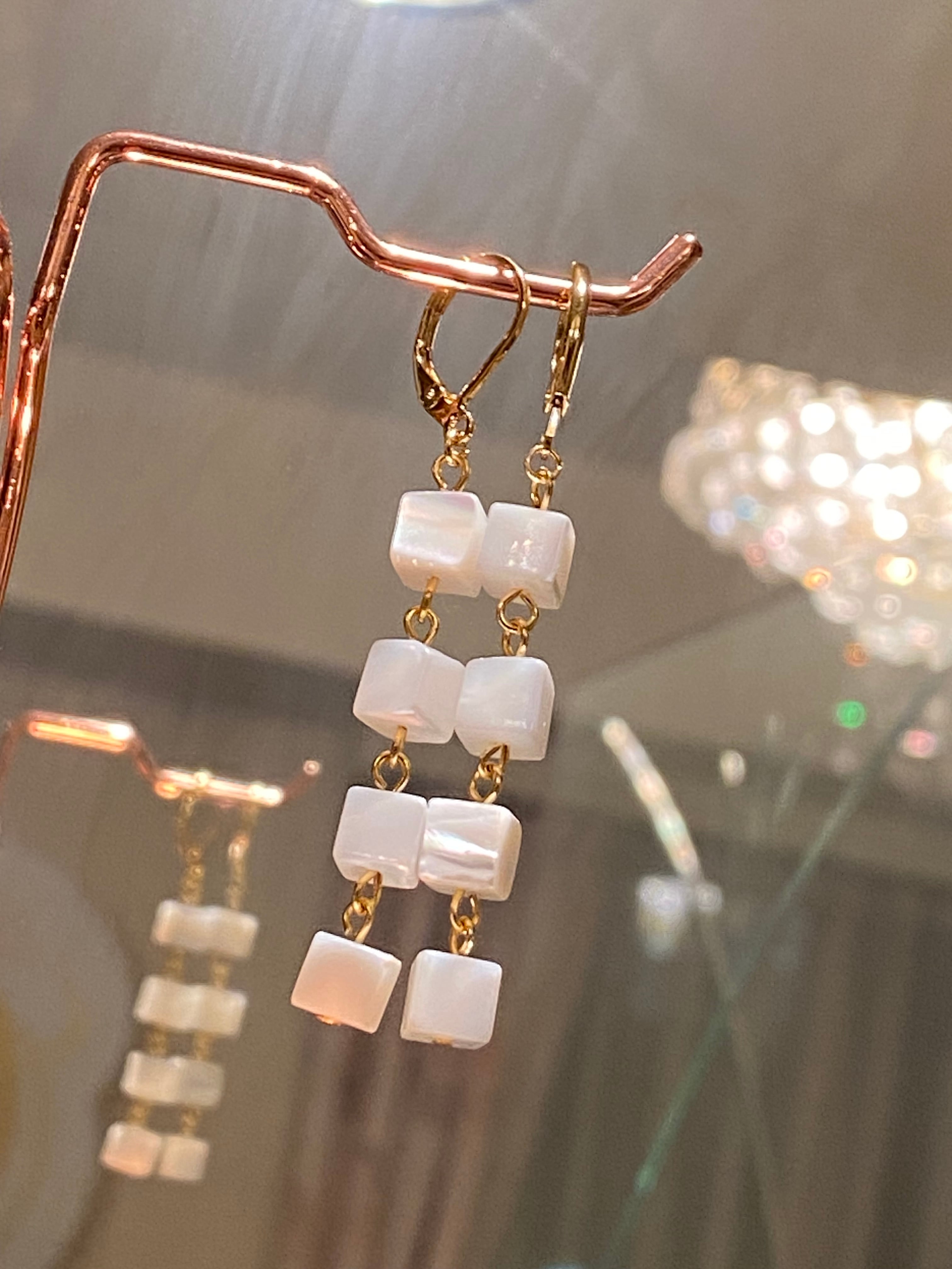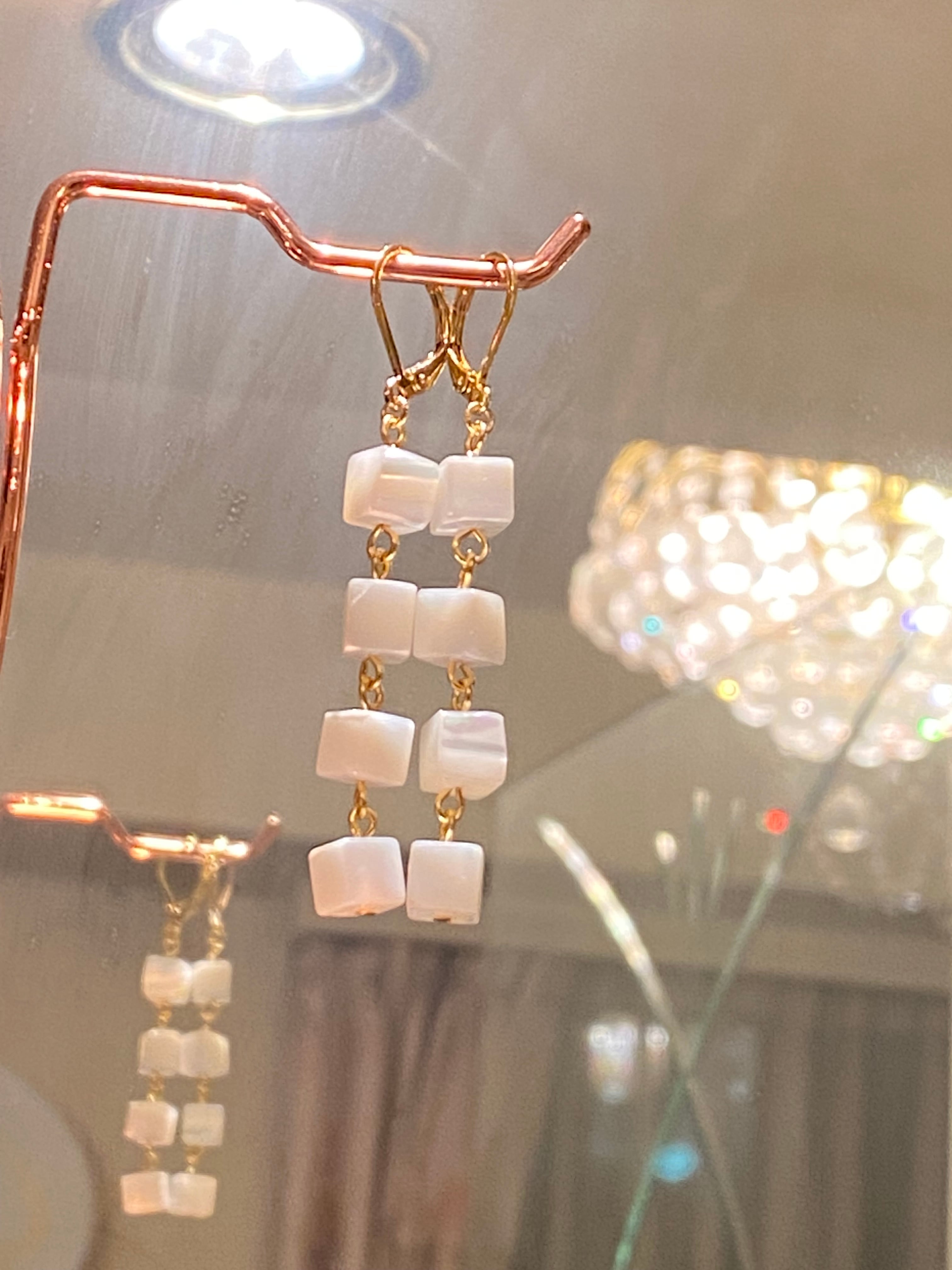 # スクエアパール4連ピアス