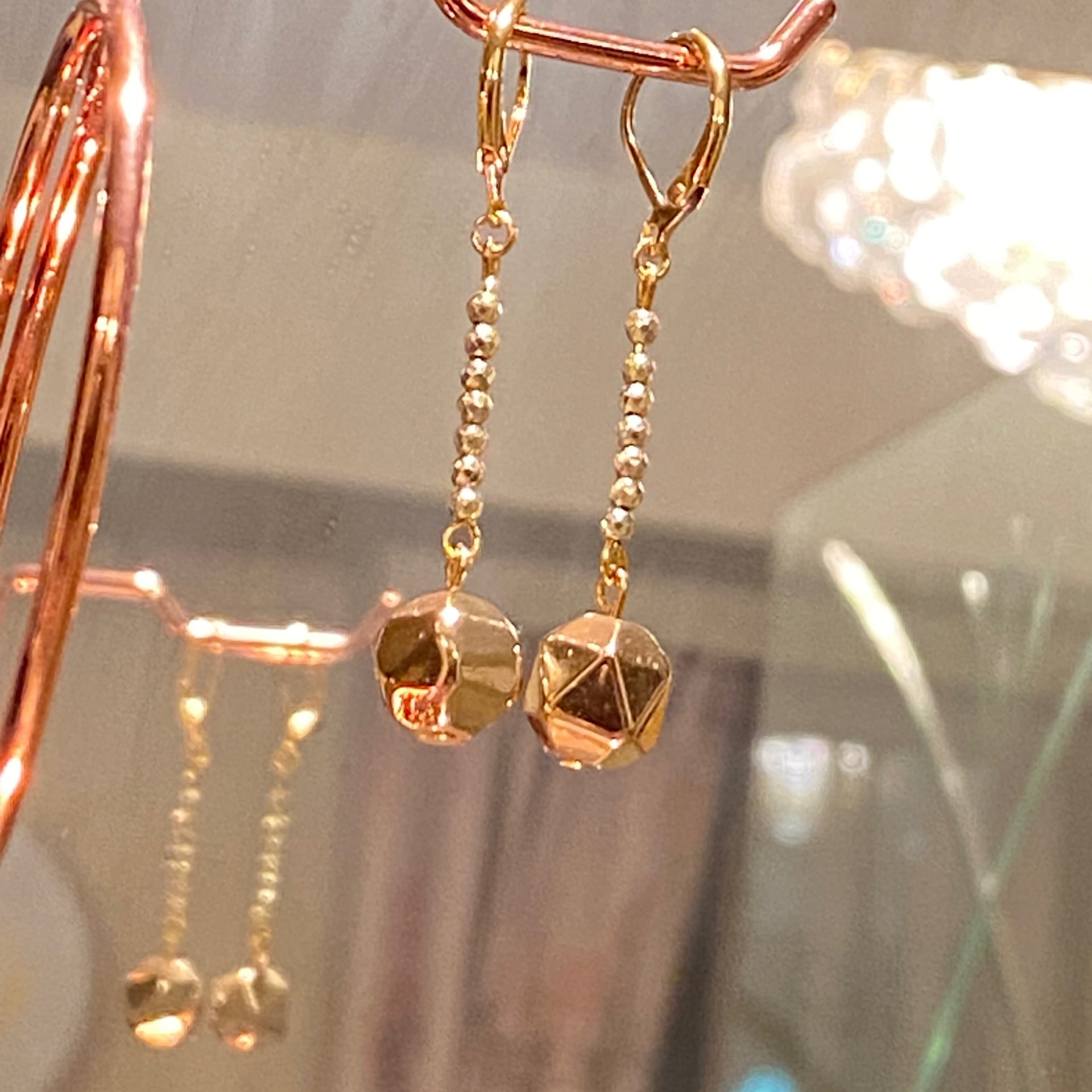 輝くゴールドヘマタイトを使用したピアス。シンプルでありながらも魅力を引き立てる華奢なデザインが特長です。このピアスは、日常使いはもちろん、特別なシーンでもあなたの魅力を際立たせてくれるアイテムです。